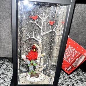 The Christmas Shoppe 11" Cardinals On a Branch Holiday Glitter Lantern Lamp NEW