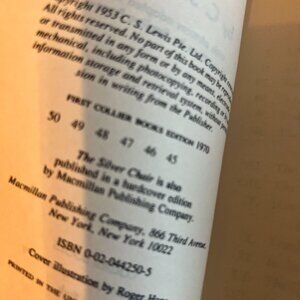 This complete set of "The Chronicles of Narnia" by C.S. Lewis presents a timeless literary classic. The 1970 First Collier Books Edition offers readers a cohesive collection of all seven adventure-filled tales. A valuable addition to any book collection, this boxed set provides immersive storytelling that has captivated readers for generations.