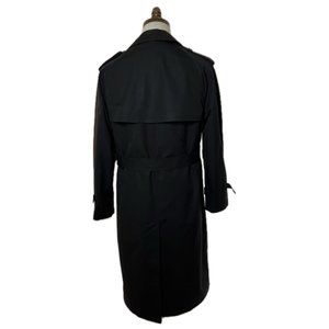 The Citadel Black All Weather Trench Coat features double-breasted button closures, convertible collar that buttons at the neck, gun flap, shoulder loops, adjustable sleeve straps, adjustable belt, welt pockets with two inside hanging pockets, back yoke/rain guard, and optional zip-out quilted liner.