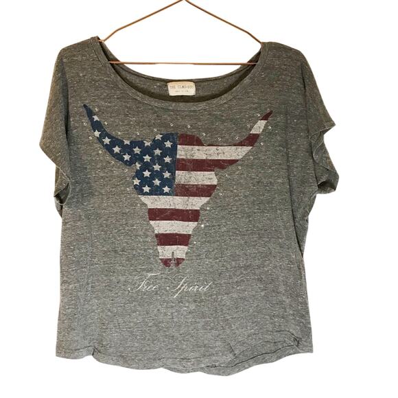 Add a touch of Americana to your wardrobe with this unique Longhorn Free Spirit top! In excellent condition and ready for its next adventure, this size XL piece is perfect for adding a statement to any outfit. Grab it now and showcase your free spirit!