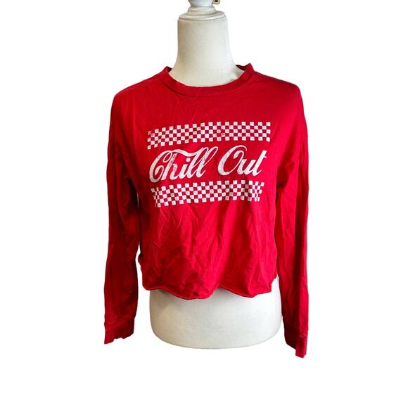 The Classic Chill Out Long Sleeve Y2K Crop Top Women’s M Red Crew Neck T-shirt. In good pre-owned condition.