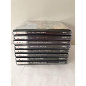Bundle of 8 classical music CDs from The Classical Collection series by POINT. All include original cases, artwork, and inserts. Discs are in good condition with light surface wear but play normally. Perfect for collectors, classical enthusiasts, or anyone expanding their music library.