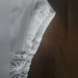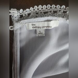 Powder blue guest occasion dress, sleeveless, pleated, detailed, looks a lot like self-portrait. Made by The clothing company. No flaws, rips, stains, etc. Excellent preowned condition. Says size Large, but obviously a medium based on measurements. Zips up side.
