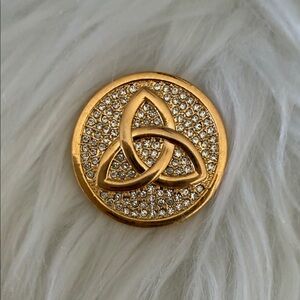 Embellishments: All three medallions are adorned with small, clear stones that enhance their visual appeal, reflecting light and adding a touch of glamour.