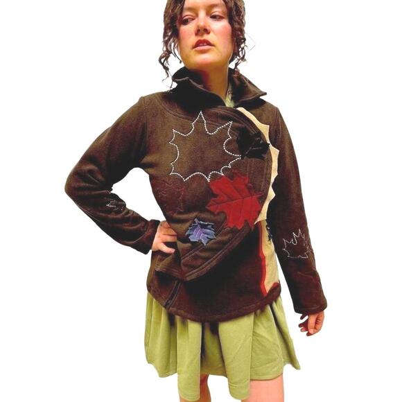 Features: 3D leaf appliqué, full front zipper, cozy fleece texture