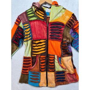 The Collection Royal Patchwork Jacket Multicolor Full Zip Hooded Nepal Women's M