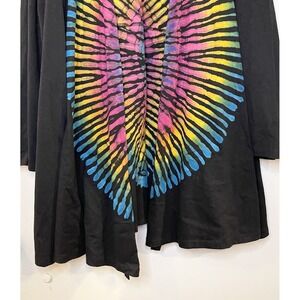 The Collection Royal Tie Dye Tunic Cardigan Open Front Duster Black Rainbow L XL