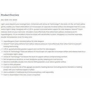 This pillow stands out for its Active Air Technology™, which integrates billions of microscopic air capsules into the Serene™ foam to enhance airflow and dissipate heat. That means you stay cooler and drier throughout the night, unlike traditional memory foam pillows that trap heat. The 2.25-inch gusset is a key design feature—it provides extra loft and support for side sleepers, helping to align the neck and shoulders and reduce pressure points.