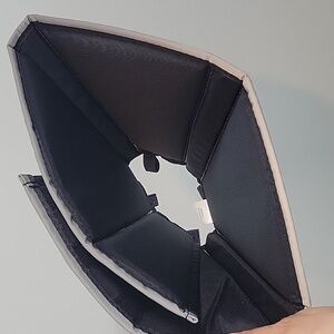 Three fuzzy fastener strips help achieve the ideal cone shape and fit; includes a reflective edge for added safety and elastic loops at the neck to thread your pet’s collar through for a secure fit at the neck.