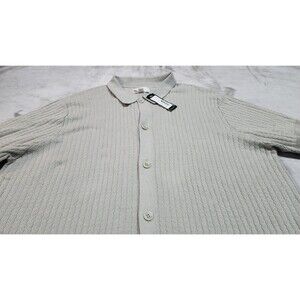 The Commons Men's Light Grey XL Ribbed Short Sleeve Button Down Shirt NWT