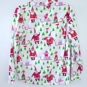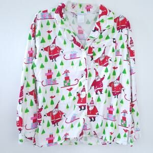 The Company Store Christmas Pajama Top Santa Small Women, Flannel, Button Up. 100% cotton, Natural Fibers. Holiday pajamas. Christmas Pajama top.