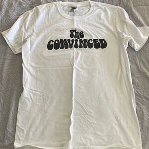 The Convinced band t-shirt in white with black logo. Perfect for music fans and band merchandise collectors.
