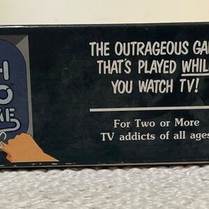 A television commercial-watching game designed for rapid party play. Players get a hand of five cards, either objects or special "Goof Proof" cards. The game owner selects a channel to watch on television, and when the commercials come on, players race to either find their own objects, or the objects of other players' face up cards so as to block them. Everybody is trying to get rid of their hand first to win the round. Perhaps the most engaging aspect of this game is that the card tray is specially designed to hold snacks as well. The rule book can objectively be designated as quite humorous.