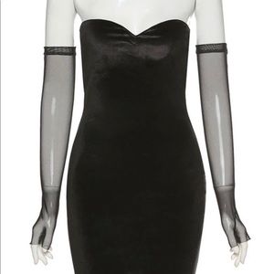 velvet dress with matching mesh gloves