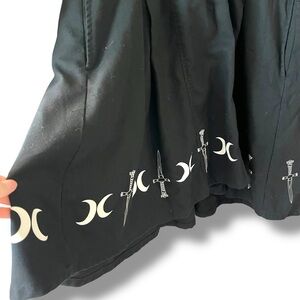 The Craft Movie Costume Women 2 in size 18 is an official Dagger Collar Button Front Dress by Hot Topic. This black dress is designed for Halloween theme costumes and is perfect for women looking to add a touch of edgy style to their outfit. With its unique collar and button front design, this dress is sure to make a statement at any Halloween event or costume party.