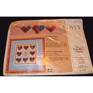 This unopened cross-stitch kit includes all materials necessary to create a heart-themed design. Professionally packaged to ensure quality and durability.