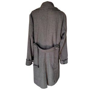 This stylish coat features a classic herringbone pattern, a belted waist for a tailored fit, and a wool blend for warmth and comfort.