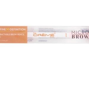 The Crème Shop's retractable Micro Brow pencil features a fine precision-point tip crayon to easily shape and fill in any areas that need a little more love. Includes a spoolie brush on the other end so that no hair goes