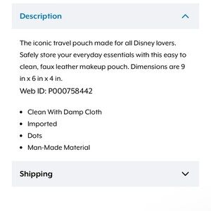 • This iconic Minnie Mouse bag is designed for makeup lovers, featuring easy-to-clean faux leather that keeps everyday accessories safe and organized.
