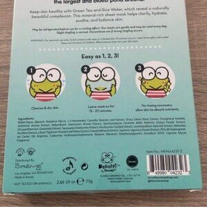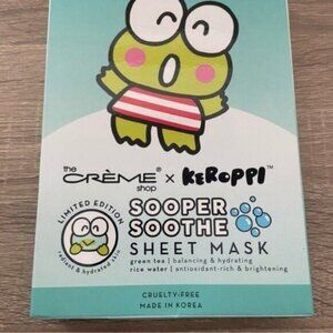 Keroppi: sooper soothe sheet mask, green tea, balancing & hydrating, rice water, antioxidant-rich & brightening