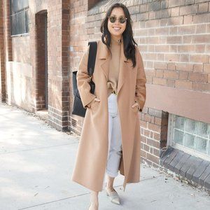 Style-wise, the Tailored Coat is cut to an A-line silhouette, features an elegant neckline with slim lapels, side pockets and fitted sleeves. It’s one of the more dressier coats from their collection which is what drew me to the design in the first place, as I wanted a coat that was dressy enough to wear to the office. The sleeves are the most fitted out of all their coats on offer and the side pockets are more subtle (as opposed to the patch pockets on their Classic Coat and Boyfriend Coat).