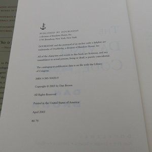 The Da Vinci Code Dan Brown 2003 Hardcover Dust Jacket Doubleday Robert Langdon