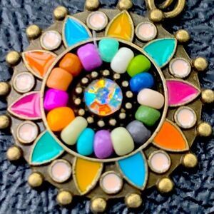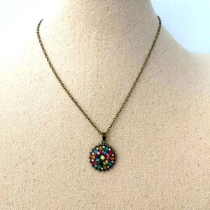 TAGS: boho flower jewelry, flower jewelry set, enamel floral necklace, colorful beaded pendant, garden party jewelry, hippie floral accessories, dahlia drop earrings