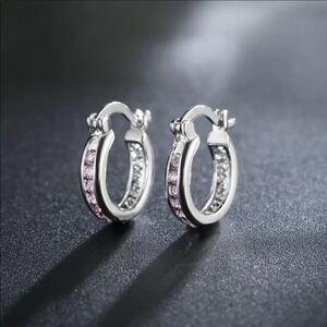 The Dainty Pink Hoop Earrings in cubic zirconia and 925