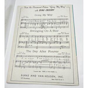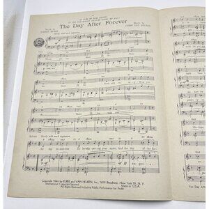 Delve into the heart of Hollywood’s golden era with this original 1944 sheet music for "The Day After Forever," with lyrics by Johnny Burke and music by Jimmy Van Heusen. A nostalgic piece from the Paramount film "Going My Way," famously performed by Bing Crosby. This charming piece encapsulates the musical sophistication of its time, complete with intricate notations. A perfect collectible for film and music historians, it captures the artistry of cinema’s lyrical past.