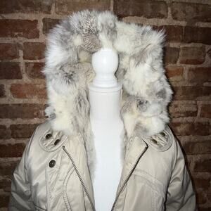 The Day Girls Women's Size Sm Rabbit Fur Lined Hooded Parka Champagne Color