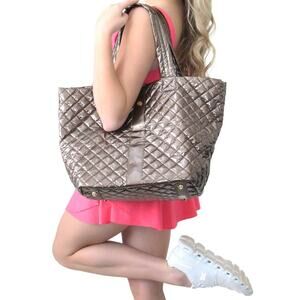 The Debra Diamond Quilted Nylon Tote Bag Cocoa Mocha