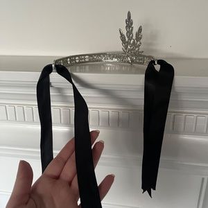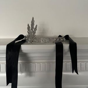 1920s-inspired rhinestone headpiece with black ribbon ties