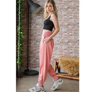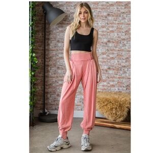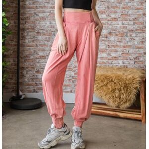 "The Deidra" Coral Smocked Waist Pleated Joggers