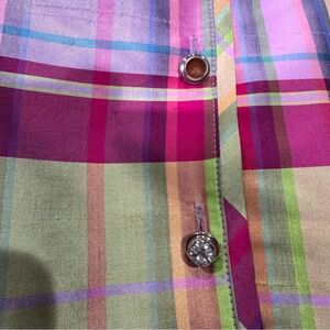 The Denim Tailor Silk Plaid Multicolored Button Up Blouse Top Women’s 6