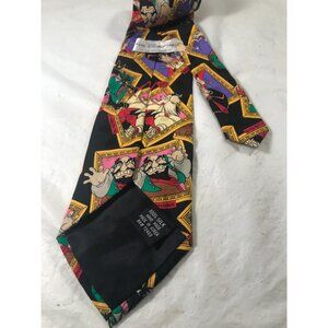 The Disney Store Cartoon Villains Tie is an eye-catching, multi-colored silk accessory. Displaying various Disney villains, it adds a playful touch to any business or formal attire.