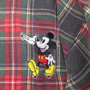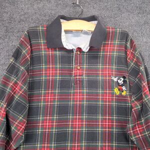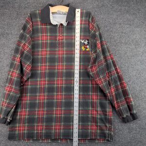The Disney Store Mens Mickey Mouse Polo Shirt Red Plaid XXL Long Sleeve Cotton