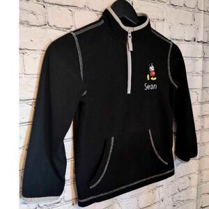 This is a cute Disney Store Mickey Mouse Black 1/4 Zip Pullover Sweater Size Small.  Monogrammed Sean.