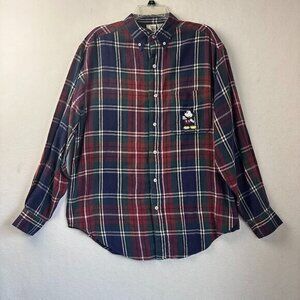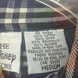 The Disney Store Mickey Mouse Embroidered Button Down Shirt Tartan Men's M VTG