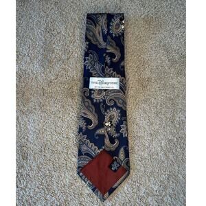 The Disney Store Mickey Mouse Paisley Print Silk Necktie Navy Blue Mens One Size