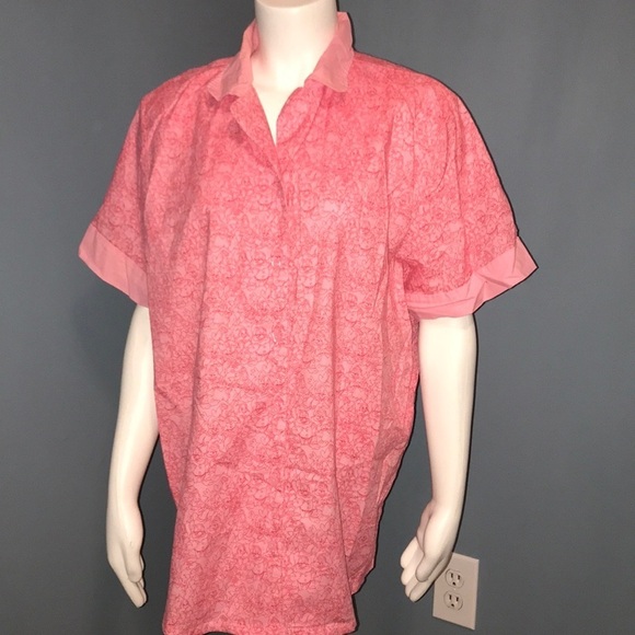 Short sleeve pink button down pajama top. Cotton with 7 dwarfs outlined in red. Excellent condition. Perfect for a vacation at Disney. Size large
