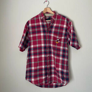 The Disney Store Vintage Mickey Mouse Red Plaid Button Down Short Sleeve Shirt M
