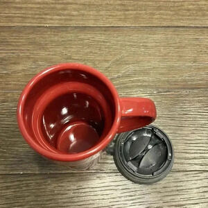 Like new - excellent condition 12oz 6” tall -maroon cup with handle and lid