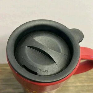 Like new - excellent condition 12oz 6” tall -maroon cup with handle and lid