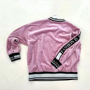 Made from velvet material, this pink sweater features a crew neck and long sleeves, perfect for casual occasions during the winter and