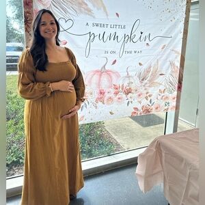 I wore this dress for my baby shower during my 3rd trimester and then for this year’s holiday card. 🧡🤎 I was/am a 12/14 pre, during and post pregnancy and this dress fit true to size. I live in Florida and this dress was a perfect fit and fabric for the weather here. ☀️