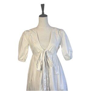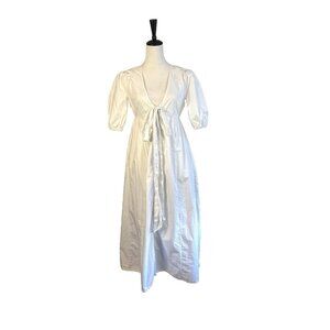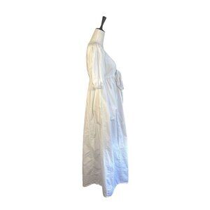 The Drop 100% Cotton White Maxi Dress Lagenlook With Pockets Front Bow Tie Sz SP