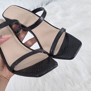 The Drop Avery Black Faux Croc Square Toe Two-Strap High Heel Sandals, Size 5