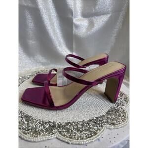 The Drop Avery Square Toe Pink Metallic Slide Sandals Size 10
