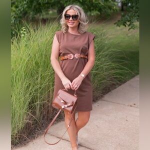 Step out in style with this elegant brown sleeveless dress. Perfect for any occasion, this dress offers a chic and comfortable fit. Pair it with your favorite accessories for a complete look.