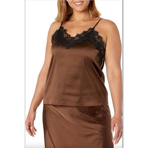 The Drop Natalie Cocoa Brown V-Neck Lace Trimmed Camisole Tank Top